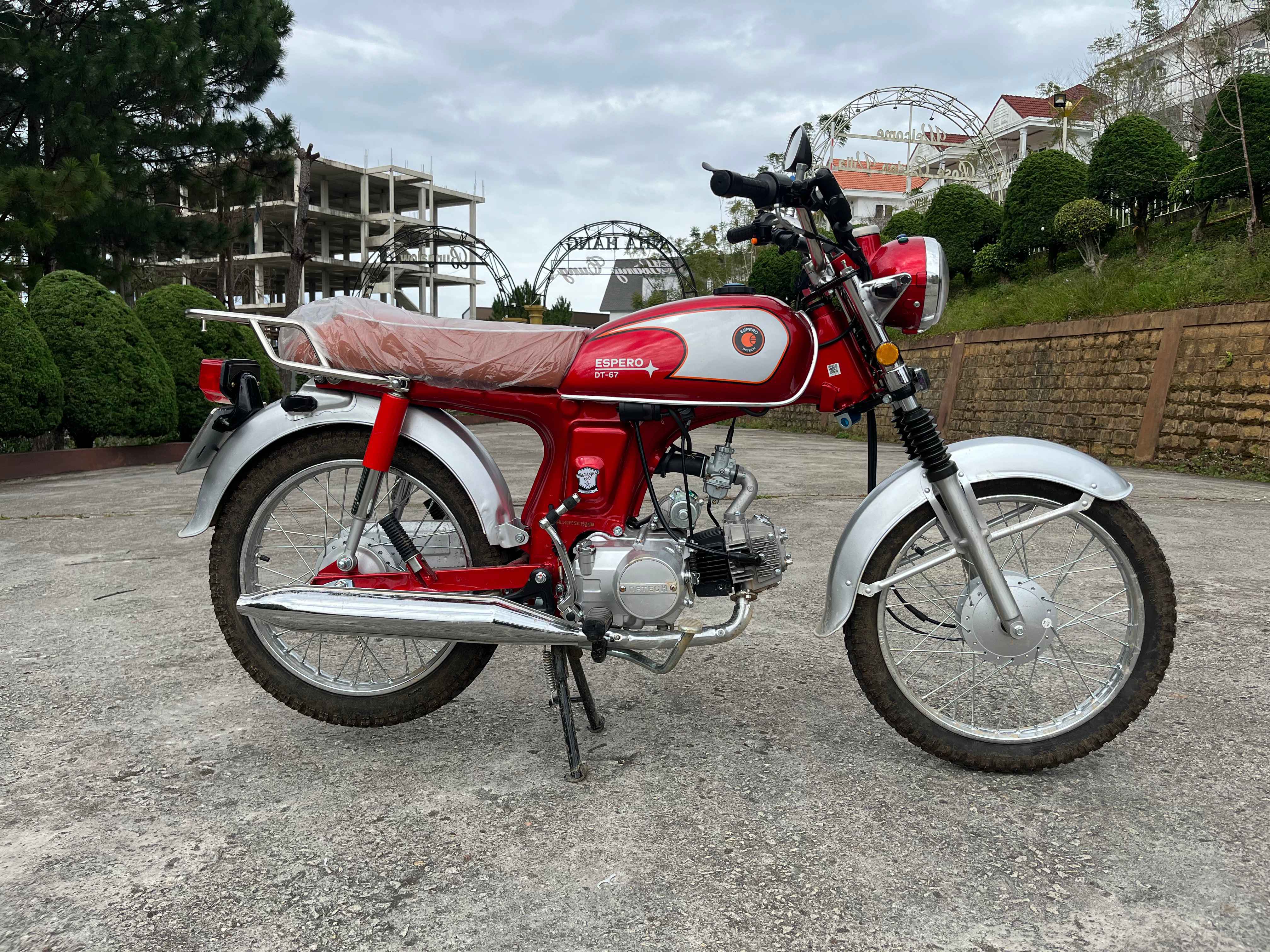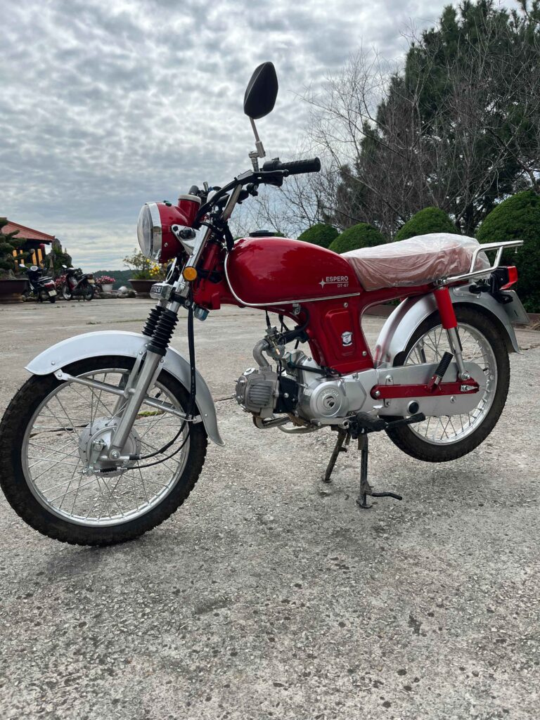 Espero Detech 67 is a stylish and reliable motorcycle in retro design, inspired by the classic Honda Win, but with a modern 110cc engine. Ideal for urban rides, light off-road, and tours in Dalat: compact, economical (consumption ~2 l/100 km), with manual transmission for full control. High frame, expanded luggage rack, and comfortable handles provide comfort on long routes. Weighing only 84 kg makes it maneuverable for beginners, and the air-cooled engine guarantees reliability in the tropics.