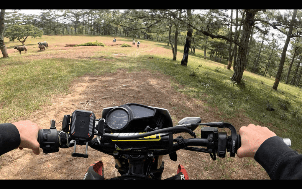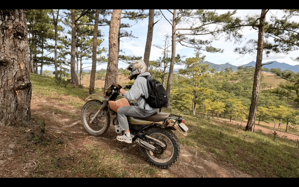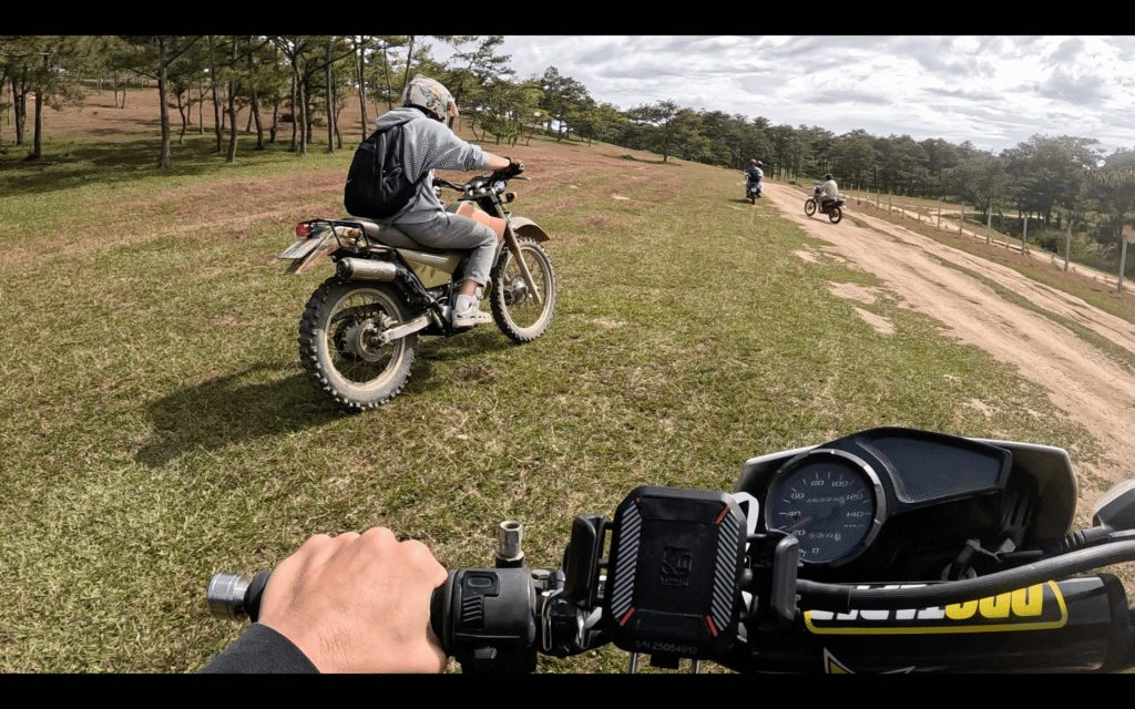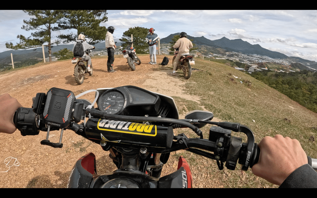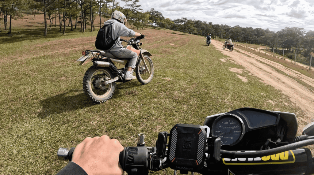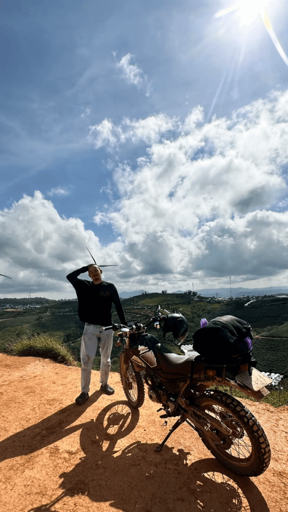 We meet in central Dalat, say hello to everyone, and do a quick safety and route briefing. Then we ride motorcycles through winding roads, pine forests, and coffee plantations to our cozy campsite.